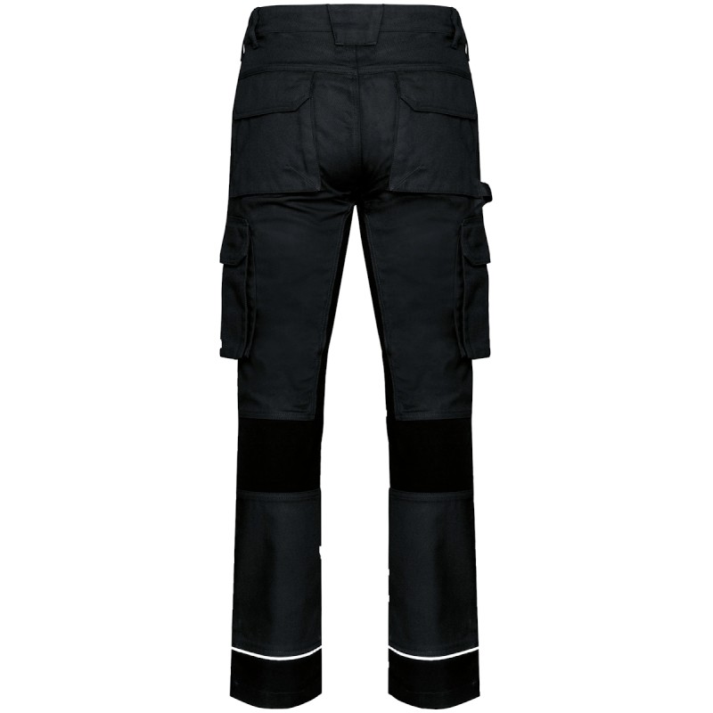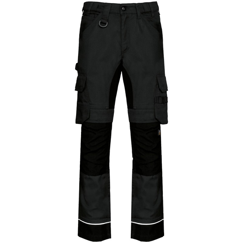 60% coton / 40% de polyester recyclé. Lavage 60°C. Coupe droite. 2 poches devant (sacs de poches en tissu principal) dont 1 avec poche ticket. 2 poches cargo volantes à soufflet et rabat et fermeture velcro dont une à 2 compartiments et emplacements outils, Poche stylos côté droit au porté. 2 poches arrière à soufflet avec rabat et fermeture velcro, Porte-marteau à gauche au porté. Mousse de confort genou intégrée dans une poche en Cordura® contrasté (noir pour toutes les couleurs). Empiècement extensible contrasté (sauf coloris noir) à l'entrejambe, à l'arrière des genoux pour plus de résistance et une parfaite liberté de mouvement. Empiècement bas de jambe en Cordura® avec piping silver et ourlet ajustable de 5 cm. Triple piqûres fourche dos et devant. Double piqûres côtés et entrejambe. Ceinture avec boucle plastique + passants ajustable grâce à un élastique. Large passant à l'arrière de la ceinture. Fermeture zippée et boutonnée (bouton métal recouvert de plastique). Etiquette de marque détachable. Vendu sans accessoire. Compatible avec WKI0306 : poches à outils amovibles.