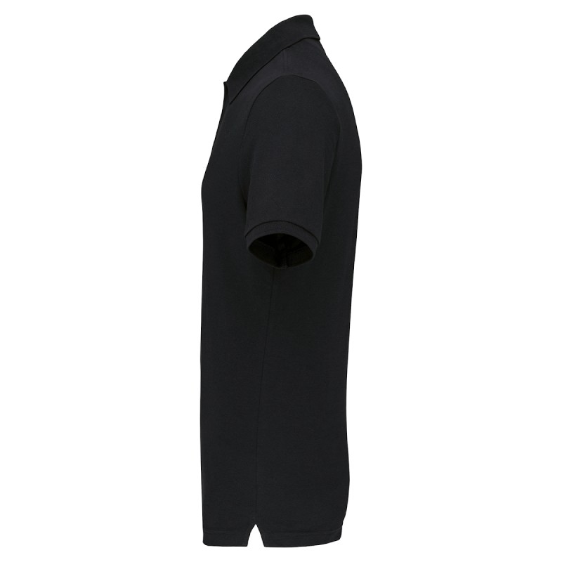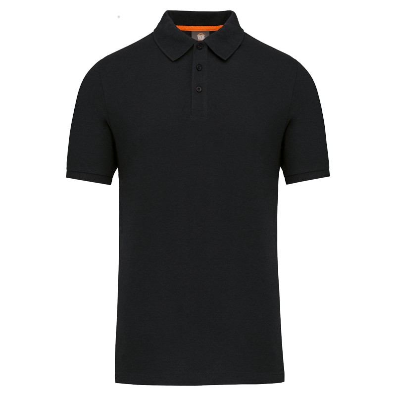 Coloris unis : 60% coton biologique / 40% polyester recyclé. Coloris Oxford Grey : 90% coton biologique / 10% viscose. Tissu maille piquée. Lavable à 60°C. Coupe droite. Col et bas de manches en bord-côte 1x1 avec bande de propreté chevron contrastée orange. Patte 3 boutons ton sur ton. 1ère boutonnière horizontale. Fentes latérales avec bande chevron contrastée orange. Finition double aiguille bas de vêtement. Etiquette de marque Tear Away pour faciliter la personnalisation. Couture renforcée aux épaules, pour une meilleure résistance.