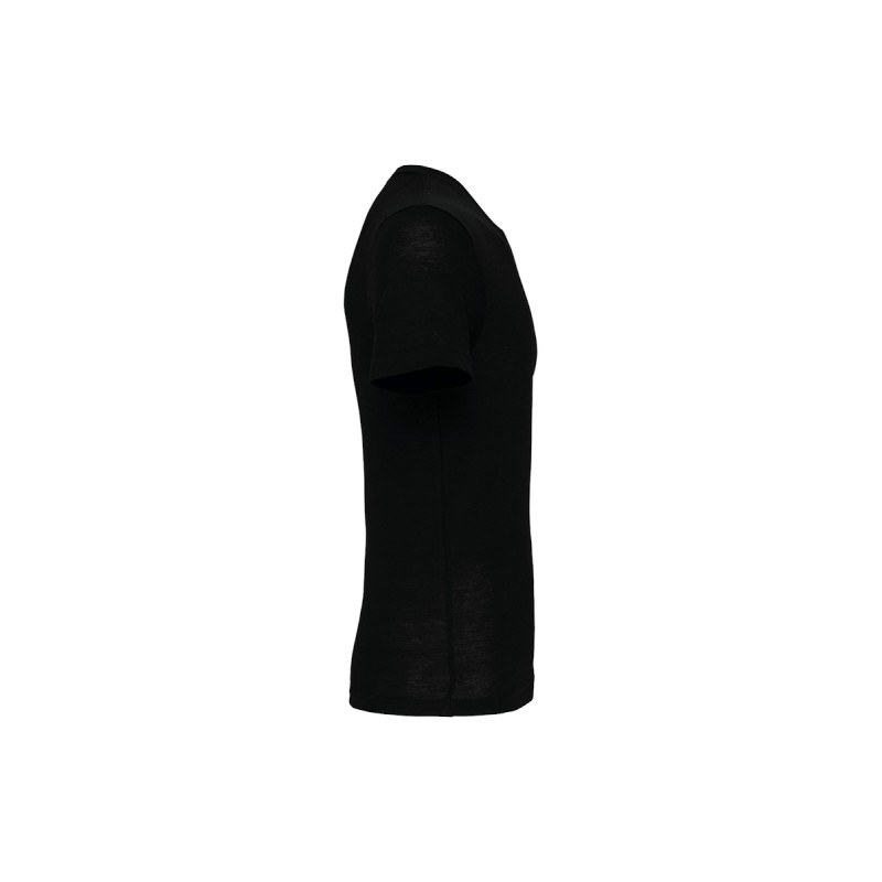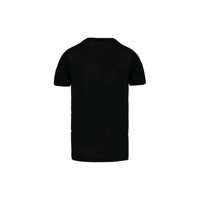 50% polyester / 25% coton / 25% viscose. Tissu jersey. Bande de propreté dans le col ton sur ton. Finition double aiguille bas de manches et de vêtement. Pas d'étiquette de marque au col, uniquement une puce de taille pour faciliter la personnalisation.